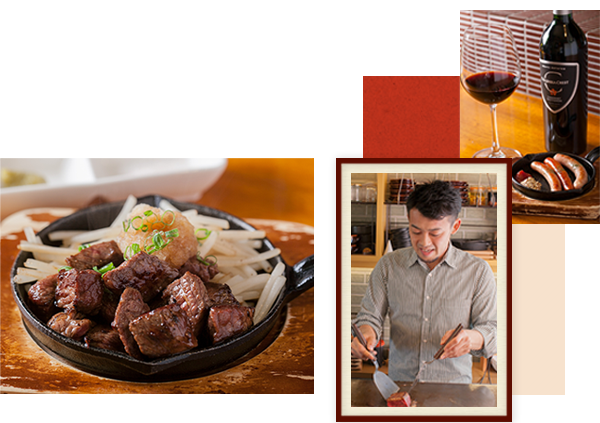 国産牛の希少部位・イチボ(お尻の先)の旨味を存分に。まずはそのままで肉の旨味を堪能した後は、おろしポン酢、ヒマラヤピンク岩塩、わさびでお好きなようにどうぞ。